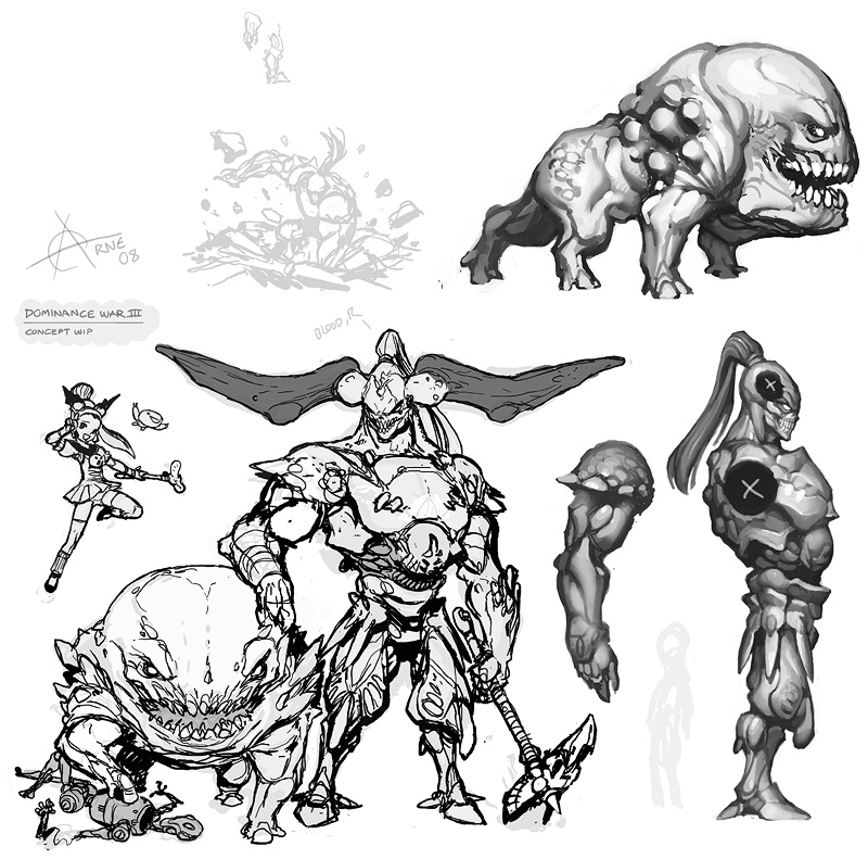 Just noodled a bit on this one, not much to show. Oh yeah, when the demon jumps and lands, it always lands super-cool, cracking the ground. And it shoots lightning through his eyes when it gets mad and want to make a point about how crazy mad it is.