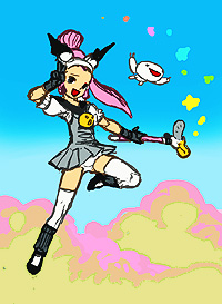 Piripi-chan and her companion pet-beast Dogu-Dogu comes from the land of Moeanime. Having journeyed far on their adventures, they now find themselves in hostile new territory. There are xenophobic growling abominations as far as the eye can reach. However, because she is a powerful Invoker, she can use her magic to blend in. After an elegant gesture with her wand... she strikes a stunning pose!